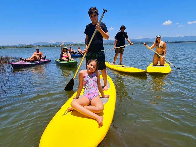 Stand Up Paddle: Remar nas águas calmas da lagoa é uma atividade relaxante e divertida. Ótima para iniciantes e amantes da natureza.
